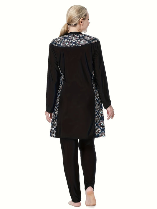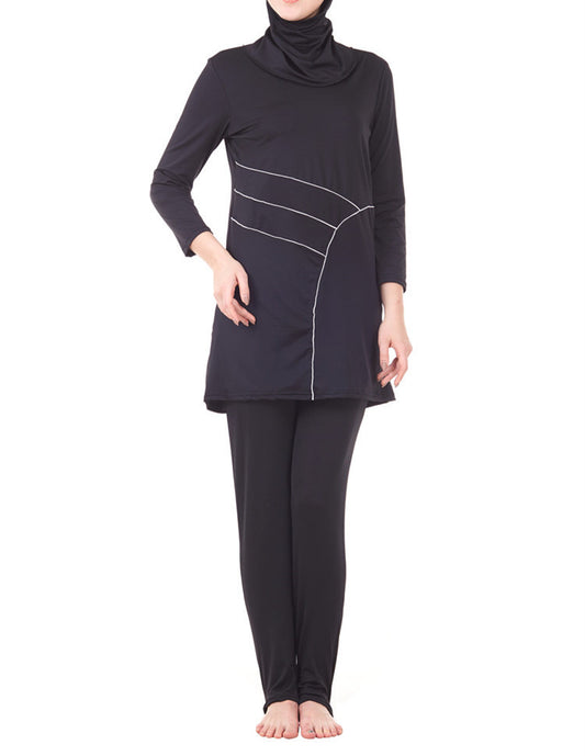 Solid Color Swimwear Conservative Middle Eastern Women Swimsuit Sportswear Suit